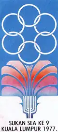 The 1977 Southeast Asian Games (Malay: Sukan Asia Tenggara 1977), officially known as the 9th Southeast Asian Games, was a Southeast Asian multi-sport event held in Kuala Lumpur, Malaysia from 19 to 26 November 1977. This was the third time Malaysia hosted the games and its first since 1971. Previously, it also hosted the games for the first time in 1965.[1][2] Brunei, Indonesia, and the Philippines were finally admitted into the SEAP Games Federation in February that year. Although the word 'Peninsula' was omitted from the new federation title to reflect the expansion, in which the games is the first games to bear the name, its emblem (which featured six rings representing the six founding members), and the sequential numbering of the games was kept to provide continuity, as well as reverence to the objectives, aspirations and contributions of the founders. The six-ring emblem was not replaced until 1999, when the present ten-ring emblem was first used in an official games logo. The games was opened and closed by Yahya Petra, the King of Malaysia at the Stadium Merdeka. The final medal tally was led by Indonesia, followed by Thailand and the Philippines, with host Malaysia in fifth place.