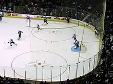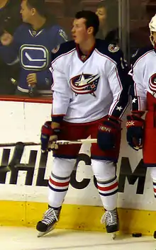 Two weeks prior to the NHL trade deadline, Columbus announced that unlike earlier in the season, they would listen to trade proposals involving Rick Nash, though they were not actively shopping him. Howson stated that the team was open to all options for improving the team, including trading Nash. Speculation was that in return for Nash the Blue Jackets would ask for a "combination of young, proven players, high-end prospects and draft picks."[41][42] Leading up to the trade deadline, the Blue Jackets dealt Antoine Vermette to the Phoenix Coyotes for two draft picks and goaltender Curtis McElhinney. Despite being injured at the time, the acquisition of McElhinney was believed to give Columbus the flexibility to trade Curtis Sanford.[43] The following day, on February 23, Columbus traded Jeff Carter to the Kings. In the deal, Columbus acquired defenseman Jack Johnson and a first-round draft pick; the team was given the choice of taking the pick in either 2012 or 2013.[44] At the deadline, Columbus was unable to come to terms on a deal involving Nash, but they did make one more move;[45] they sent center Samuel Pahlsson to the Vancouver Canucks in exchange for two fourth-round draft picks and minor league defenseman Taylor Ellington.[46] Following the trade deadline, Howson announced that the team had attempted to trade Nash at the player's request. Nash stated that he had requested the trade after being informed that the franchise was going into another rebuilding phase. He further noted that he felt that he "could be a huge part of that towards bringing assets in," and in his view "it was the best thing for the team, the organization, and personally for [his] career."[47] After the personnel changes, the Blue Jackets closed out the month with a three-game losing streak.