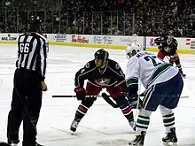 Columbus started March with a 2–0 shutout against the Colorado Avalanche.[48] They proceeded to win their next game against the Phoenix Coyotes 5–2, which marked the first time that the Blue Jackets posted back-to-back regulation victories during the season.[49] Columbus again defeated the Coyotes three days later to earn their first three-game win streak of the season.[50] They extended the streak to four with a win over the Los Angeles Kings before it came to an end with a 4–1 loss to the St. Louis Blues. It was the only four-game win streak of the season for the Blue Jackets.[14] They immediately matched their four-game win streak with a four-game losing streak and with ten games remaining, the Blue Jackets were the first team eliminated from playoff contention.[51] Shortly after being eliminated, they were defeated by the Edmonton Oilers 6–3; the loss clinched last place in the NHL for Columbus.[52] It was the first time in franchise history the Blue Jackets finished in 30th place.[53]