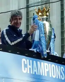 The 2013–14 season marked the first time City advanced to the round of 16 of the UEFA Champions League. There, the Blues were defeated by Barcelona 4–1 on aggregate.[8][9] City also recorded their first silverware of the Manuel Pellegrini era on 2 March 2014, when they lifted the Football League Cup.[10] It was the club's first triumph in the competition since 1976.[11]