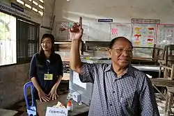 One of the controversies that beset the Cambodian election before it even began was the use of an ostensibly indelible ink that was used to mark which voters had already voted.[10] The ink had previously been donated by the Indian Embassy in Cambodia. Documentation by poll monitors before the election demonstrated the ink could simply be washed off using bleach or lime juice in minutes upon drying.[9] The ink used could have perhaps allowed voters to vote more than once.[10]