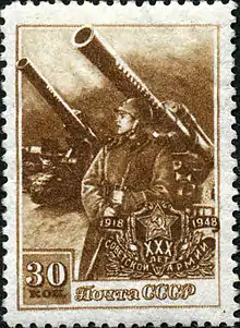 203 mm howitzer M1931 (B-4) (Russian: 203-мм гаубица обр. 1931 г. (Б-4), GRAU index: 52-G-625) was a 203 mm (8 inch) Soviet high-power heavy howitzer. During the Second World War, it was under the command of the Stavka's strategic reserve. It was nicknamed "Stalin's sledgehammer" by German soldiers. These guns were used with success against Finnish pillboxes at the Mannerheim Line, heavy German fortifications and in urban combat for destroying protected buildings and bunkers. These guns were used until the end of the war in the Battle of Berlin, during which the Red Army used them to smash German fortifications at point blank range with their heavy 203mm shells. In the spring of 1944, a KV-1S tank chassis was used to create a self-propelled variant, the S-51. The heavy recoil from the muzzle blast threw the crew off their seats and damaged the transmission, and so it was cancelled.[3]