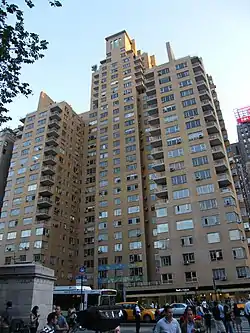More modern reviewers also praised 240 Central Park South as innovative, even if its design often went unnoticed.[78][84] Paul Goldberger wrote in 1977 that 240 Central Park South, while "often overlooked", had apartments that were "well organized and a far cry from the cramped layouts" of that era.[28] Goldberger also called the building "a remarkably sophisticated design" for its time, with its varied apartment layouts, Broadway storefronts, and park views.[85] In 1980, architectural historian Robert A. M. Stern wrote that the building was a paradigm of the contextually responsible high-rise apartment in Manhattan".[11][17][77] In his subsequent book New York 1930, Stern called the building "a synthetic work that was at once infill and icon", despite what he saw as shortfalls in the building's courtyard and "bland facade".[25] As early as 1996, Stern had suggested that 240 Central Park South was a viable candidate for official landmark status.[86] Martin Filler, writing for The New Republic in 2000, described 240 Central Park South as Columbus Circle's best structure, saying: "This stylish exemplar of high-density urbanism, completed just before civilian construction halted with our entry into World War II, has never been superseded."[87]