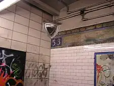 - Cox, Jeremiah (June 9, 2009). "The only 53 tiling in the single band of trim that is still visible after passing through the High Exit gate that leads out to 52 St". subwaynut.com. Archived from the original on March 9, 2016. Retrieved March 26, 2017.