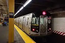 The 59th Street station is an express station on the BMT Fourth Avenue Line of the New York City Subway. Located at 59th Street and Fourth Avenue in Sunset Park, Brooklyn, it is served by the N and R trains at all times. During rush hours, several W and northbound Q trains also serve the station.[lower-alpha 1]