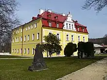 The main square of the town is Goethovo Square named after J. W. Goethe, who often visited the town. In the middle of the square is the Memorial of J. W. Goethe from 1932, designed by Johannes Watzal. The landmark of the square is the town hall. It was built in 1733 in the Baroque style, but in 1814 was burned out. In 1816 it was built again, according to the original plans.[14]