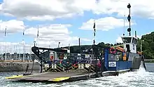 The A379 crosses the River Dart using the Higher Ferry, a car ferry that until 2009 had a capacity of just 18 cars, which caused congestion at busy times. A new ferryboat with a capacity of 32 cars came into service in June 2009.[2] The alternative Lower Ferry can also be used, although this involves negotiating the narrow streets of Kingswear village.