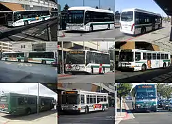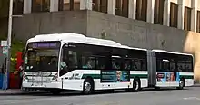AC Transit also pioneered the use of articulated buses in the United States; in March 1966 it was the first transit agency to use the Super Golden Eagle long-distance coach (originally designed and built for Continental Trailways; AC Transit designated it XMC-77 and called it the "Freeway Train"), primarily on Transbay service.[19] By 1970, AC Transit was one of six agencies to participate in a "super bus project" coordinated by the National Transportation Center (Pittsburgh) to write a specification for a higher-capacity bus; once the specification had been written, two prototypes would be built and tested to select a winner for a large group procurement of 100 buses to keep per-unit costs low.[20] Two European-built articulated buses were tested in the summer of 1974: a Volvo B58, and a MAN SG 192.[21][22] Riders received the M.A.N. bus favorably, and the specification was released for bid in 1975;[23] AC Transit placed an order for 30 buses in 1976 and deliveries began from the AM General/M.A.N. joint venture in 1978.[24]
