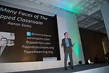 Since then he has spoken at conferences and trained teachers at schools, districts and universities in various parts of the United States, Canada and Europe. Sams does not take credit for the term “flipped classroom” stating along with Bergman that the term arose in the media.[1]