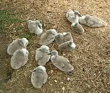 At the end of July, the swans become flightless, for around six weeks, due to the moulting of their feathers. Once every two years, the swans are rounded up, so that they can be examined, weighed and measured and any new birds to the colony ringed. The round-up is undertaken by around 50 canoes that start at the eastern end of the lagoon and slowly drive the birds into the swannery bay at Abbotsbury. In the past the round-up has resulted in over 900 birds being caught and recorded, but it varies from year to year.[2]