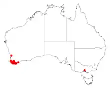 It is native to an area in the South West and Great Southern regions of Western Australia.[1] It is commonly found from around Nannup south east to around Denmark with another population near Albany.