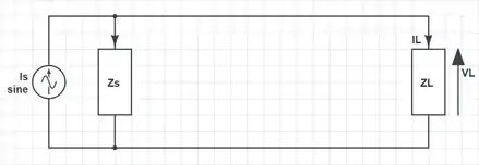 where is the load voltage measured without the filter and is the load voltage with the filter included in the system. By applying KVL, KCL and Ohm's law to the circuit, these two voltages can be calculated.[11] If is the filter's gain, i.e. the transfer function between the sensed and the injected signal, IL results to be: