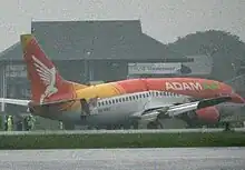 ![]() Adam Air Flight 172 after impact on the runway. | |
