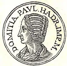 Domitia Paulina or Paullina, Domitia Paulina Major or Paulina Major, (Major Latin for the elder), also known as Paulina the Elder (?-85/86). Paulina was a Roman woman born in Spain who lived in the 1st century. She was a daughter of a distinguished senatorial family. Paulina originally came from Gades (modern Cádiz, Spain). Gades was one of the wealthiest Roman cities. Little is known of the life of Paulina. She may have been related to Domitia Lucilla the grandmother of Marcus Aurelius. G. Di Vita-Evard speculated that they might have been half-sisters.[1]