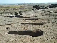 The Early Bronze Age site is surrounded by walls; they are up to one meter thick and were made of sun-dried mud-brick.