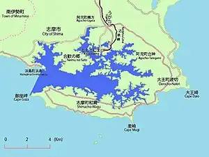 Ago Bay (英虞湾, Ago-wan) is a bay in the city of Shima, Mie Prefecture, Japan. It is part of the Ise-Shima region.
