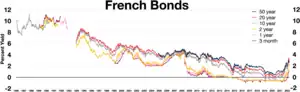 In July 2020, during the COVID-19 pandemic, the French government issued 10-years bonds which had negative interest rates, for the first time in its history (which means that investors buying French bonds will pay, rather than receive, interest for owning French sovereign debt).[60]