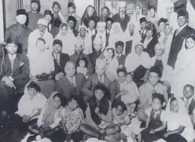 In August and September 1932, the Ahmadiyya movement participated in the World Fellowship of Faiths Convention. Opened with a message from the caliph and world head of the Ahmadiyya movement, Mirza Basheer-ud-Din Mahmood Ahmad, the convention exhibited a speech on "Islam, Promoting World Peace and Progress," delivered by Muhammad Zafarullah Khan, an Ahmadi Muslim and a former president of All-India Muslim League. In one conference held on September 1, 1935, Bengalee attempted to give a practical example of favourable race relation among his converts. He introduced a white convert, Muhammad Ahmad, and a black convert, Omar Khan. The two discussed Islamic qualities concerning race relations. Perhaps, the most conspicuous was a conference at the Chicago Temple Building, attended by speakers of various religious and racial backgrounds. The conference which was entitled, "How Can We Overcome Color and Race Prejudice?" was attended by over 2000 people.[39] By the 1940s, the Ahmadiyya movement had between 5000 and 10,000 members in the United States, a small speck in sight of the growing 2 million members worldwide. In light of this and a number of political and cultural concerns and rising tensions in the Muslim world, the African American identity and its local issues were occasionally obscured.[40] Moreover, during the 1940s, the Ahmadiyya movement began to shift away from its focus on the African Americans, and again towards the general public.[38]