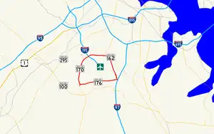 Airport Loop is the designation for the portions of state highways that form a circumferential highway around Baltimore/Washington International Thurgood Marshall Airport (BWI Airport) in Anne Arundel County in the U.S. state of Maryland. The loop runs 8.44 miles (13.58 km) through the communities of Linthicum, Ferndale, and Hanover. Airport Loop consists of a 3.47-mile (5.58 km) section of Maryland Route 170 (MD 170) along the western and northern sides of the loop; the entire 2.31-mile (3.72 km) length of MD 162 on the eastern side of the loop; and a 2.66-mile (4.28 km) segment of MD 176 on the southern side of the loop. Airport Loop intersects Interstate 195 (I-195), which provides freeway access to the airport terminal, and is connected to I-695, I-97, and MD 100 via connecting highways. The MD 170 and MD 162 sections of Airport Loop are part of the National Highway System.[1]