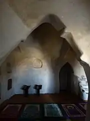 The prayer hall has a small mihrab (the niche in the wall that indicates the direction of Mecca), a simple pulpit, arches, and openings. A central pillar divides the internal space into four squares of similar dimensions. The pillar supports all four domes that can be seen from the exterior.[6]