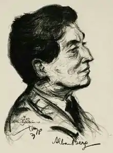 Alban Maria Johannes Berg (/bɛərɡ/ BAIRG,[1] German: [ˈalbaːn ˈbɛʁk]; 9 February 1885 – 24 December 1935) was an Austrian composer of the Second Viennese School. His compositional style combined Romantic lyricism with the twelve-tone technique.[2] Although he left a relatively small oeuvre, he is remembered as one of the most important composers of the 20th century for his expressive style encompassing "entire worlds of emotion and structure".[3]