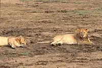 Virunga National Park together with the adjacent Queen Elizabeth National Park forms a "Lion Conservation Unit".[55] The area is considered a potential lion (Panthera leo) stronghold, if poaching is curbed and prey species recover.[54] In the national park's northern sector, African leopard (P. pardus pardus), marsh mongoose (Atilax paludinosus), giant pangolin (Smutsia gigantea), tree pangolin (Phataginus tricuspis), crested porcupine (Hystrix cristata), Lord Derby's scaly-tailed squirrel (Anomalurus derbianus), Boehm's bush squirrel (Paraxerus boehmi), western tree hyrax (Dendrohyrax dorsalis), Emin's pouched rat (Cricetomys emini) and checkered elephant shrew (Rhynchocyon cirnei) were recorded during surveys in 2008.[50]