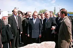 Following the initial period of peaceful collaboration with Yeltsin, from the end of 1992, Rutskoy began openly declaring his opposition to the President's economic and foreign policies and accusing some Russian government officials of corruption. For instance, an account stated that he refused to shake the hands of Sergei Filatov, head of the Executive Office of the President, calling him a scum.[10] Rutskoy claimed that Filatov reduced the number of vice presidential staff in response the day after the incident.[11] Rutskoy was accused of corruption by the officials of Yeltsin's government. On 1 September 1993, President Boris Yeltsin suspended Rutskoy's execution of his vice-presidential duties, due to alleged corruption charges,[12] which was not further confirmed.[13] On 3 September, the Supreme Soviet rejected Yeltsin's suspension of Rutskoy and referred the question to the Constitutional Court.[12]