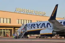 Alghero - Riviera del Corallo Airport (Italian: Aeroporto di Alghero - Riviera del Corallo; Catalan: L'Aeroport de l'Alguer-Fertília)[1] (IATA: AHO, ICAO: LIEA) is an international airport situated 4.3 NM (8.0 km; 4.9 mi) north-northwest of the city of Alghero, in northern Sardinia, Italy. It is also known as Alghero–Fertilia Airport, named for the nearby village of Fertilia or Alghero Airport. It is one of the three main airports serving Sardinia, the other ones being Olbia in the northeast, and near Cagliari in the south. The airport is operated by SO.GE.A.AL (Societa di Gestione Aeroporto di Alghero).