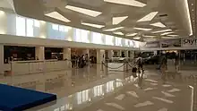 The terminal building was recently renovated and expanded with the construction of a new terminal, which allowed the airport to expand the services offered to travelers. A renovation of the old terminal is planned to transform it into a shopping mall. On 9 April 2008, the new departures and arrivals halls were inaugurated in the presence of civil authorities, the military and the Bishop of the Diocese of Alghero-Bosa Giacomo Lanzetti. This expanded the terminal area from 8,000 m2 to approximately 14,000 m2.