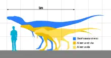 Paleontologists have long classified Alioramus within the superfamily Tyrannosauroidea, but because its remains were for many years poorly known, a more precise classification had remained elusive until the discovery of A. altai.[6] A cladistic analysis published in 2003 found Alioramus could be further classified into the family Tyrannosauridae and the subfamily Tyrannosaurinae, alongside Tyrannosaurus, Tarbosaurus and Daspletosaurus.[12] A 2004 study supported this result but suggested it was equally probable that Alioramus belonged outside the family Tyrannosauridae entirely, with its supposed juvenile characters actually reflecting a more basal position within Tyrannosauroidea.[6] Another study omitted Alioramus altogether due to the only specimen's fragmentary nature.[13] The description of A. altai in 2009 confirmed the placement of the genus within the Tyrannosaurinae.[3]