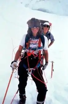 ![]() Alison Chadwick-Onyszkiewicz on Annapurna between camps II and III. Photographed by Arlene Blum. | |