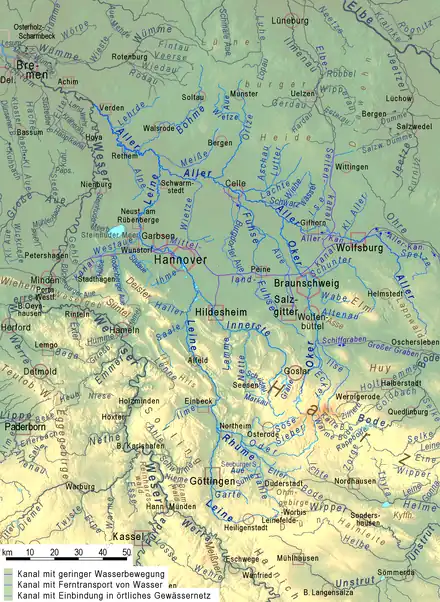 | • left | Oker, Fuhse, Wietze, Leine, Alpe, Wölpe |