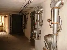 The individual fortifications were typically built in rock on valley sides. Where this was not suitable, concrete was used for protection, with a minimum of openings and three to five metres of concrete thickness. Combat blocks were to the front, with ammunition rooms behind. Underground galleries connected the combat blocks and their support areas, such as the utility rooms, barracks, storage and command centres, with the main entry farthest to the rear. Combat areas were isolated from the rest of the structure by gas-tight doorways. Units built after 1939 were designed to operate independently, cut off from utilities and supplies.