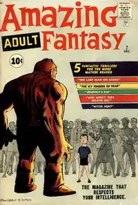 The science fiction-fantasy anthology Amazing Adult Fantasy began with issue #7 (cover-dated Dec. 1961), having taken over the number of the similar anthology Amazing Adventures. The earlier issues before the title change featured stories drawn by a number of artists including Jack Kirby, Don Heck and Steve Ditko. Amazing Adult Fantasy featured exclusively the quick, quirky, twist-ending tales of artist Ditko and writer-editor Stan Lee that had appeared in Amazing Adventures and sister titles primarily featuring rampaging monsters. The cover of the comic carried the motto "The magazine that respects your intelligence".[1]