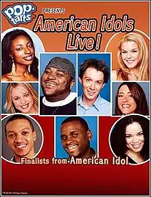 American Idols Live! Tour 2003 was a concert tour featuring 9 of the top 12 contestants of the second season of American Idol, which aired in 2003. It began on July 8, 2003, St. Paul, Minnesota and finished on August 31, 2003, in Anaheim, California. Josh Gracin was unable to participate in the tour as he was recalled to his unit in the U.S. Marines, and Corey Clark was barred from participating due to his failure to reveal his Misdemeanor arrest.[1] Corey Clark was replaced by Charles Grigsby for the tour, but the show producers opted not to replace Josh Gracin with twelfth-placed finisher Vanessa Olivarez.