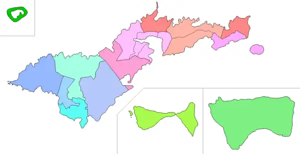 The number of representatives and senators per district, set by the constitution in 1967, was roughly proportional to their population in the census of 1960, the most recent at the time.[16] Although the constitution states that "Senators and representatives shall be reapportioned by law at intervals of not less than 5 years", such reapportionment has never been made.[17] Therefore, as a result of population changes, the representation of some counties has become disproportional. The largest discrepancies occur in the counties of the Manu‘a islands, whose population has significantly decreased, and in Tualauta, whose population has increased much more than the rest of the territory.[16] In 2017 and 2018, proposals were made to add one or two representatives from Tualauta, while possibly reducing one representative from Manu‘a.[18][16]