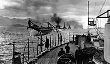 The loss of eight battleships and 2,403 Americans[72] at Pearl Harbor forced the U.S. to rely on its remaining aircraft carriers, which won a major victory over Japan at Midway just six months into the war, and on its growing submarine fleet. The Navy and Marine Corps followed this up with an island hopping campaign across the central and south Pacific in 1943–1945, reaching the outskirts of Japan in the Battle of Okinawa. During 1942 and 1943, the U.S. deployed millions of men and thousands of planes and tanks to the UK, beginning with the strategic bombing of Nazi Germany and occupied Europe and leading up to the Allied invasions of occupied North Africa in November 1942, Sicily and Italy in 1943, France in 1944, and the invasion of Germany in 1945, parallel with the Soviet invasion from the Eastern Front. That led to the surrender of Nazi Germany in May 1945. While the final European Axis Powers were defeated within a year of Operation Overlord, the fighting in Central Europe was especially bloody for the United States, with more U.S. military deaths occurring in Germany than in any other country during the war.[73]