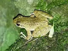 Amolops torrentis, commonly known as the torrent sucker frog or the little torrent frog is a species of frog in the family Ranidae and genus Amolops that is endemic to China, specifically only on the island of Hainan.[2] They are most likely to be found in streams and surrounding wetland areas. Males have high-pitched mating calls, which are favored by females. Glands on this species' skin can secrete toxins. This species suffers from parasitism and habitat loss. Currently it is listed as vulnerable by the IUCN and is protected by law in China.