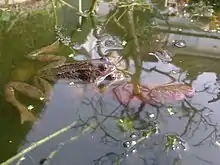 The duration of amplexus has been found to vary across species. In some species it may last for many days, while in others it may last a few hours.[4] Despite the variation in the duration of amplexus across species, typically all species that exhibit this behaviour have to use their forelimb muscles for the duration of amplexus.[4] Studies have found that this reproductive behaviour of amplexus can come with different fitness costs, due to the fact that amplexus can occur for prolonged periods of time. For instance, a study found that when a male amphibian is grasping and holding onto a female amphibian, this can lead to the impairment of the female's ability to move or to feed.[5] After conducting experiments, researchers confirmed that amplexus does decrease a female's locomotor performance (e.g., swimming, walking) as well as the feeding rates.[5] With regard to the cost to the male engaged in amplexus, male amphibians have been found to not feed at all during amplexus.[5]