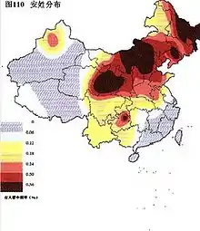 Distribution of the Chinese surname An in territories claimed by the People's Republic of China