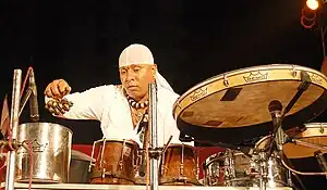 Sivamani (born 1 December 1959), commonly known by his stage name Drums Sivamani, is an Indian percussionist. He plays many instruments including drums, octoban, darbuka, udukai, ghatam and kanjira. He performed drumming during the Indian Premier League in 2008 and 2010. He is affiliated with the Chennai Super Kings team, but gained recognition through his role as A. R. Rahman's lead percussionist. They have been close friends since childhood. In 2019, he was conferred with Padma Shri.[1]