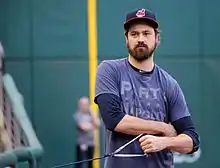 On July 31, 2016, the Yankees traded Miller to the Cleveland Indians for Clint Frazier, Justus Sheffield, Ben Heller and J. P. Feyereisen.[57] Miller's first save for Cleveland was in a 5−2 victory over New York at Yankee Stadium on August 6, 2016. He became the first pitcher to earn a save for and against the Yankees in the same season since 1988.[58]