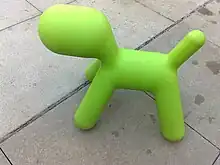 The green Android was joined early on by Alex, a dog of similar colour and design. It was actually a toy chair, Puppy by Eero Aarnio. This statue was stolen in 2009.[15]