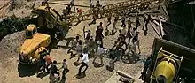 It leads to a climax scene where Killer's gang are invaded on a construction site, complete with diggers and machinery used in the battle.