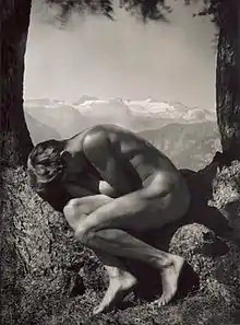 In 1925 the couple had one daughter, Liselotte, portrayed with her mother in a Madonna and Child image of that year. Julia Secklehner[4] identifies it, and Koppitz's 'self-portrait' nude In the Arms of Nature, most likely a collaborative effort by the couple, as adhering to the Körperkult ('cult of the body') and the naturist heimat sentiment in its alpine setting and heroic low-angle viewpoint.[5][6]