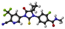 Apalutamide, sold under the brand name Erleada among others, is a nonsteroidal antiandrogen (NSAA) medication which is used in the treatment of prostate cancer.[2][6][7][8][9] It is specifically indicated for use in conjunction with castration in the treatment of non-metastatic castration-resistant prostate cancer (NM-CRPC).[2][10][11] It is taken by mouth.[2][6]