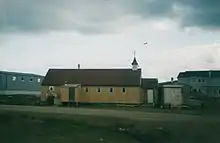 Apex (Inuktitut Niaqunngut) is a small community in Iqaluit located on Baffin Island in Nunavut, Canada.[1] It is about 5 km (3.1 mi) southeast of Iqaluit on a small peninsula separating Koojesse (Kuujussi) Inlet from Tarr Inlet. Historically Apex was the place where most Inuit lived when Iqaluit was a military site and off-limits to anyone not working at the base. The community is accessed by bridge or causeway, and bordered by a local creek (kuujuusi) and waterfall (kugluktuk). Located here are the women's shelter, a church, Nanook Elementary School, and a bed-and-breakfast, along with housing for about 60 families.