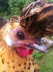 The Appenzeller Spitzhauben is a Swiss breed of crested chicken originating in the historical Appenzell region of Switzerland.[7] It is one of two chicken breeds from that area, the other being the Appenzeller Barthuhn; the only other Swiss breed of chicken is the Schweizer.