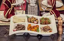 Arab cuisine (Arabic: المطبخ العربي) is the cuisine of the Arab world, defined as the various regional cuisines of the Arab people, spanning from the Maghreb to the Fertile Crescent and the Arabian Peninsula.[1] These cuisines are centuries old and reflect the culture of trading in ingredients, spices, herbs, and commodities. The regions have many similarities, but also unique traditions. They have also been influenced by climate, cultivation, and mutual commerce.