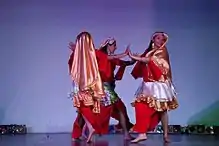 Arab folk dances (Arabic: رقص عربي, romanized: raqs ʿarabiyy), also referred to as Oriental dance, Middle-Eastern dance and Eastern dance, are the traditional folk dances of the Arabs in Arab world. Arab dance has many different styles, including the three main types of folklore, classical, and contemporary. It is enjoyed and implemented throughout the Arab region, from North Africa to the Middle East.[1][2]